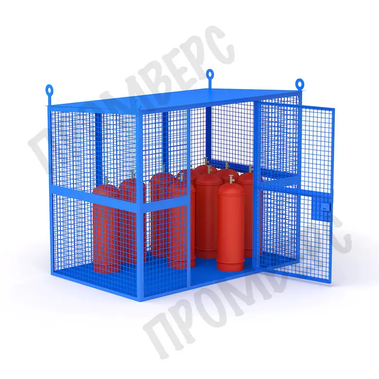 В данной клети хранятся и транспортируются баллоны объемом 50 литров. Количество баллонов размещаемых в клети: 9 штук.Конструкция сварная. Пол клети: деревянная доска, толщиной 40 мм.