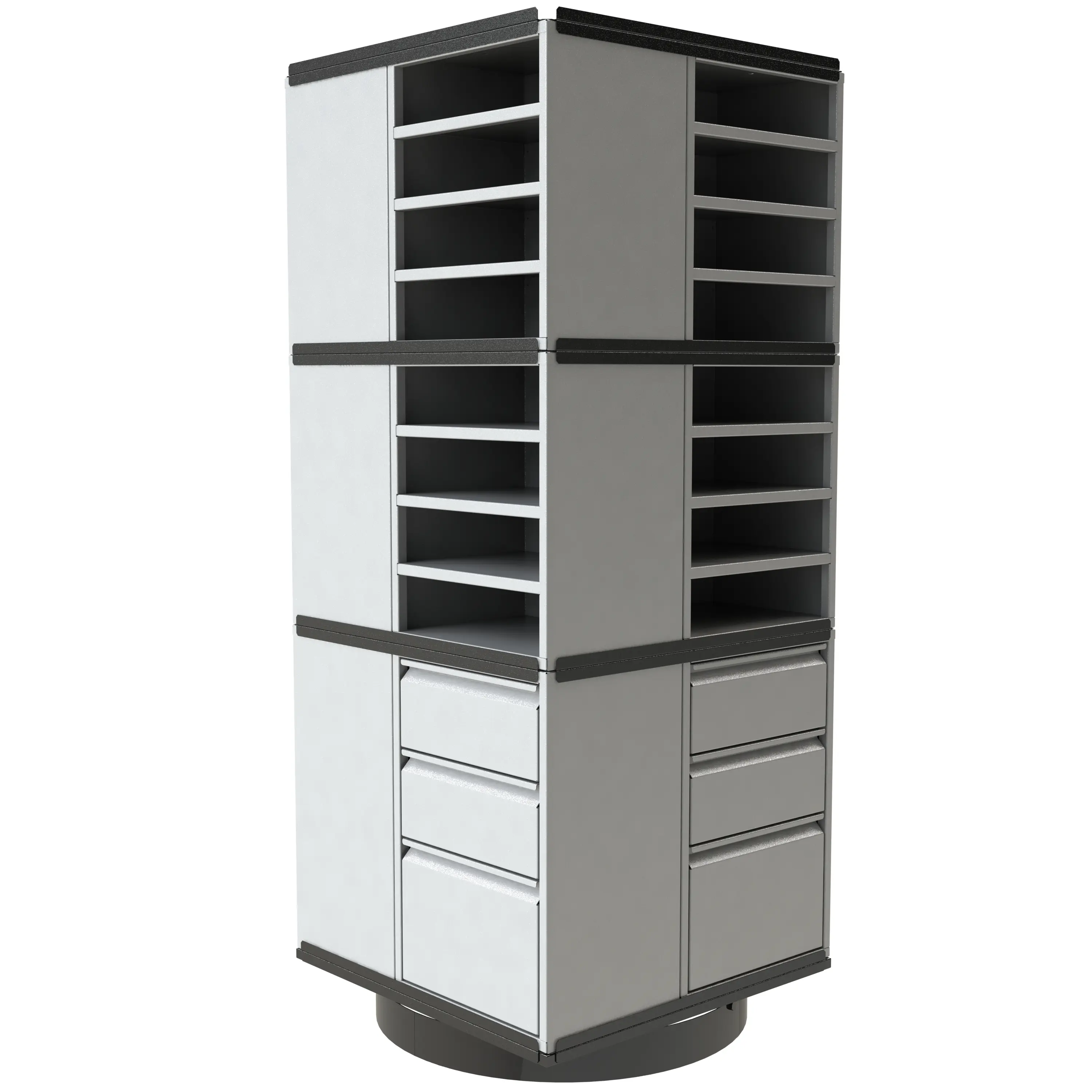 Поворотный шкаф с выдвижными ящиками используется на производствах. Легкое управление и разворот на 360 градусов. Цвет серый. Конструкция сварная. Гарантия 12 мес. Вес 233 кг.